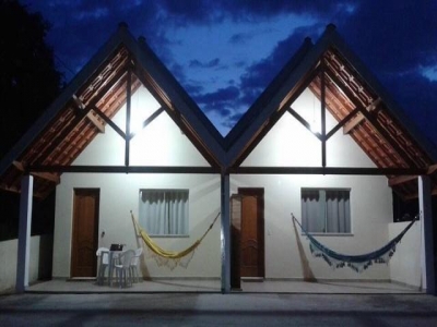 Chalés com 1 quarto, 1 banheiro e acomodações para até 5 pessoas.