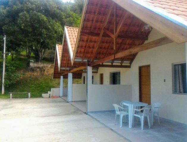 Os chalés são novos, amplos (35m2), contam com cama box + bicama, cozinha americana equipada, banheiro e varanda.