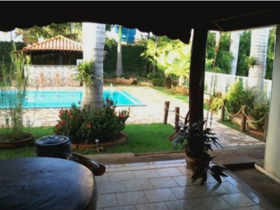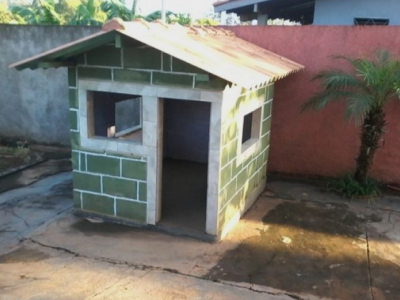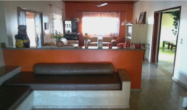 2 banheiros, area de lazer/serviços, ampla área externa, mesas, piscina, brinquedos para as crianças.