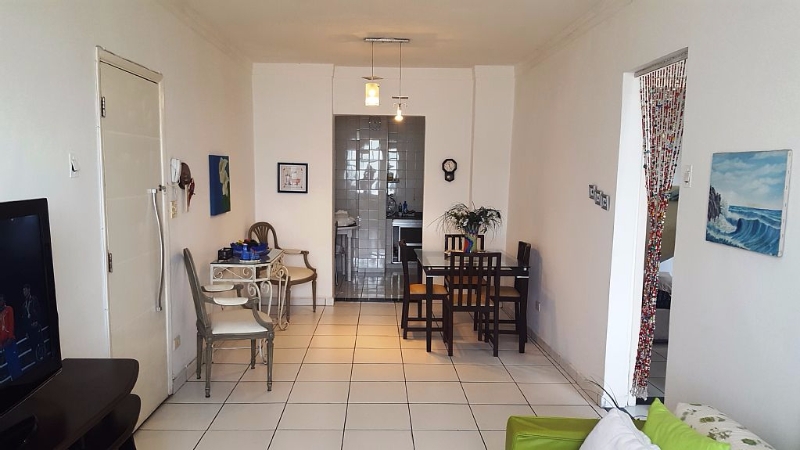 Apartamento lindo, sala e um dos dormitórios com vista para a baia de São Vicente em edifÃcio familiar com portaria 24 horas.