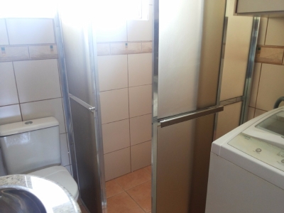 Ventiladores de mesa. Acomoda no máximo 06 pessoas. Cozinha estilo americano, com utensÃlios e eletrodomésticos novos,máquina de lavar roupas, TV de 42` de LCD.