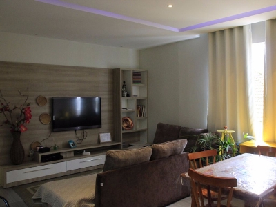 Apartamento limpo e acolhedor, na quadra da praia, com 3 quartos e 2 banheiros, com sala ampla, copa, cozinha totalmente equipada, lavanderia com secadora de roupas, ar condicionado nos quartos e sala, TV Ã cabo, elevador e estacionamento rotativo. Em frente ao Supermercado Dia, Ã 100 mts da praia.