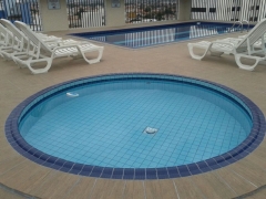 Alugo apartamento com dois dormitórios sendo um suíte, sala dupla, cozinha, área de serviço, banheiro e garagem demarcada. Piscina, churrasqueira, salão de festas, jogos.