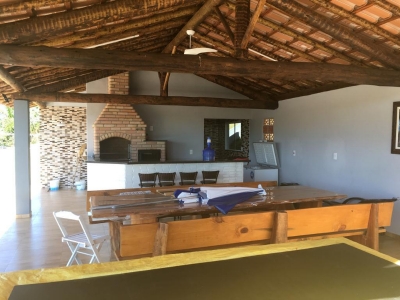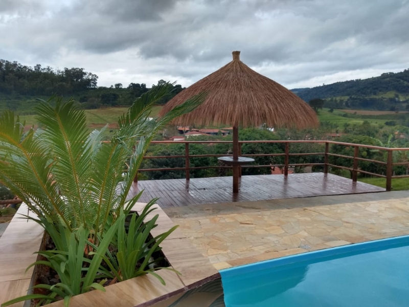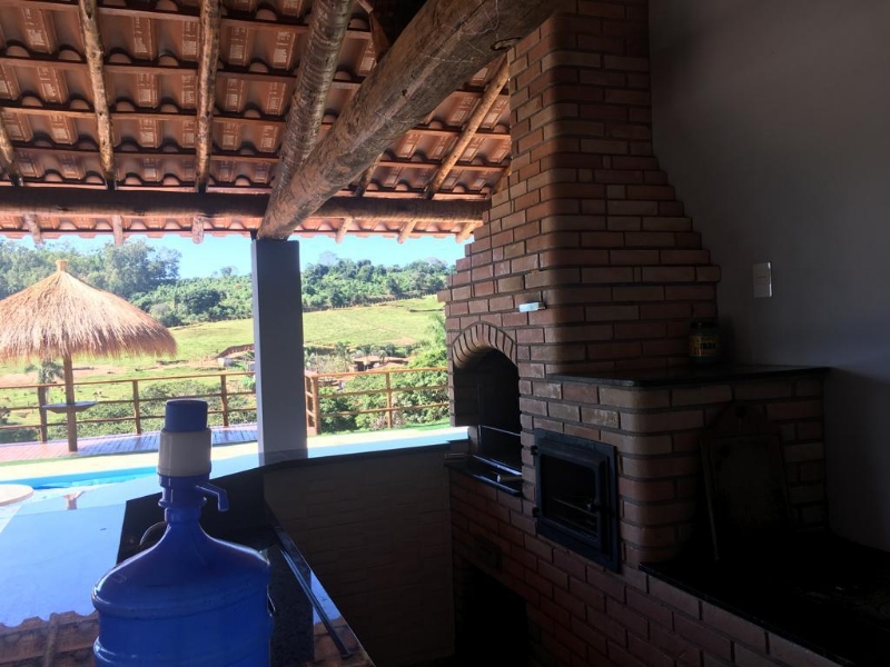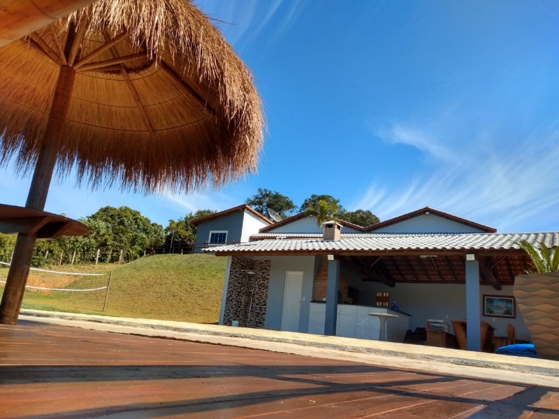 SÃtio com 4 quartos, 3 banheiros e acomodações para até 20 pessoas.
